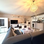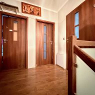 Dom ma 110 m² i jest rozłożony na dwóch poziomach. Na dole znajduje się część dzienna z wyjściem do ogródka, zaplecze gospodarcze oraz łazienka . Na piętrze znajdują się trzy pokoje oraz duża dobrze doświetlona łazienka. Dodatkowo dom posiada poddasze, które można wykorzystać jako dodatkowe miejsce do przechowywania lub zaaranżować według własnych potrzeb.