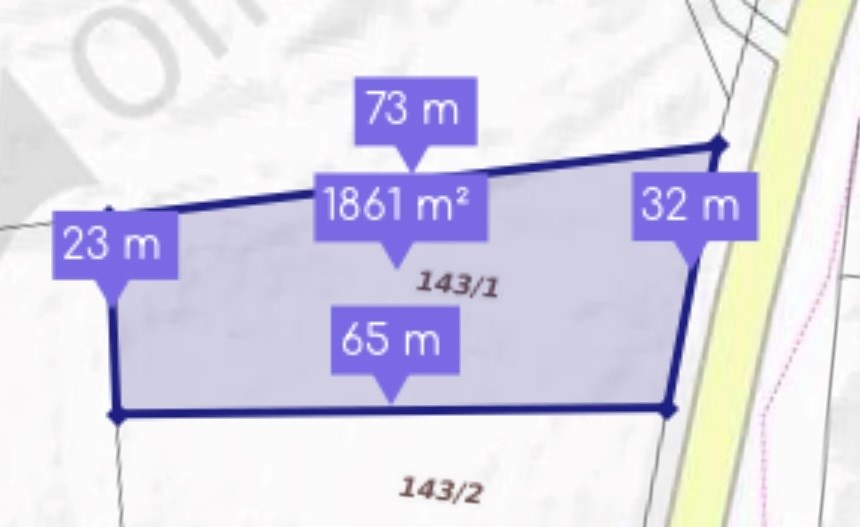 Działka 143/1 ma powierzchnię 1853,17 m².