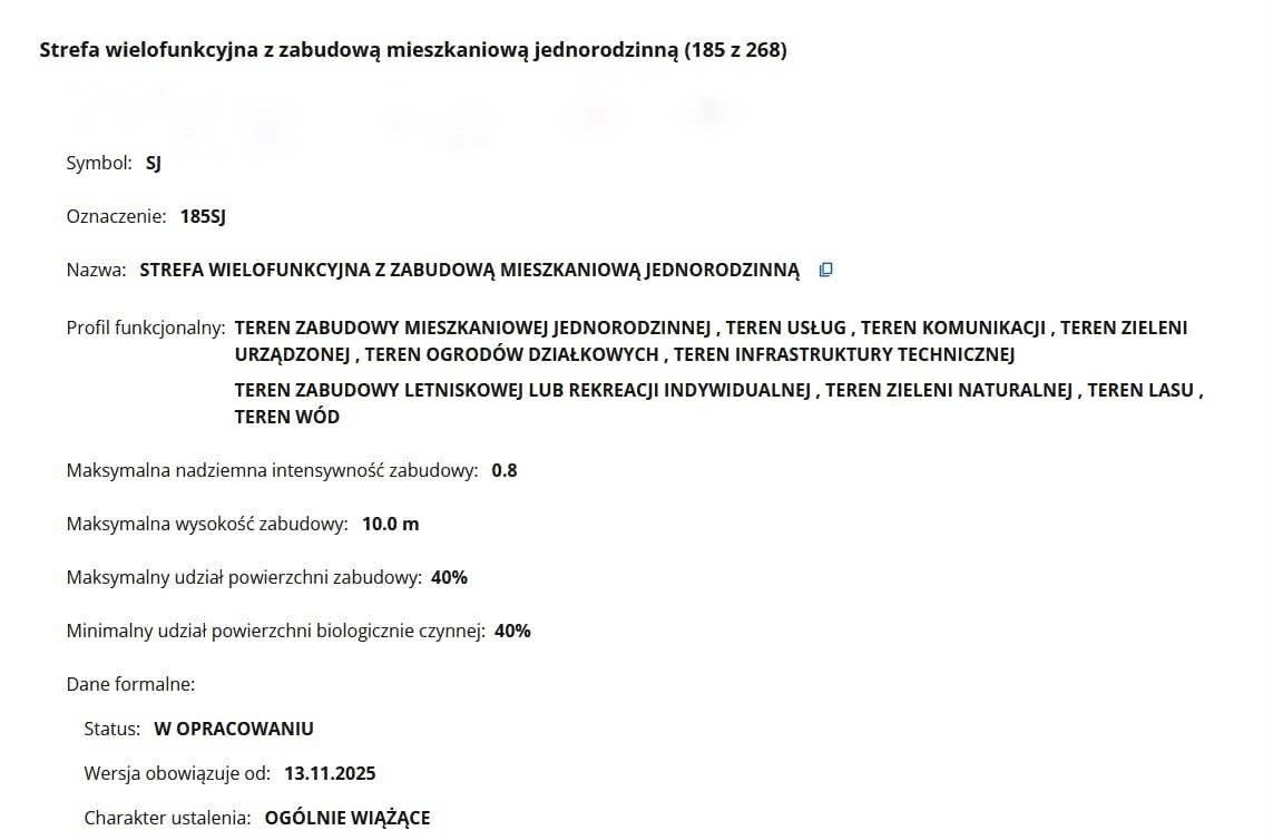 Nieruchomość znajduje się w strefie wielofunkcyjnej z zabudową mieszkaniową jednorodzinną