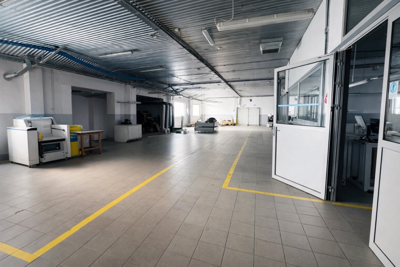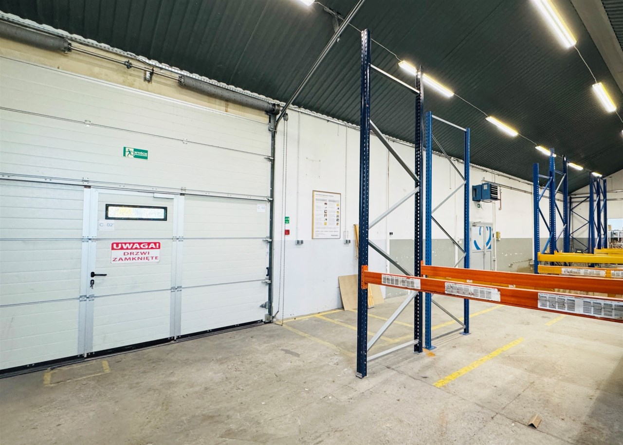 Hala nr 3 wraz z częścią biurową – aż 1625 m², oferująca przestrzeń magazynowo-produkcyjną oraz komfortowe zaplecze biurowe i socjalne dla pracowników oraz kadry zarządzającej.