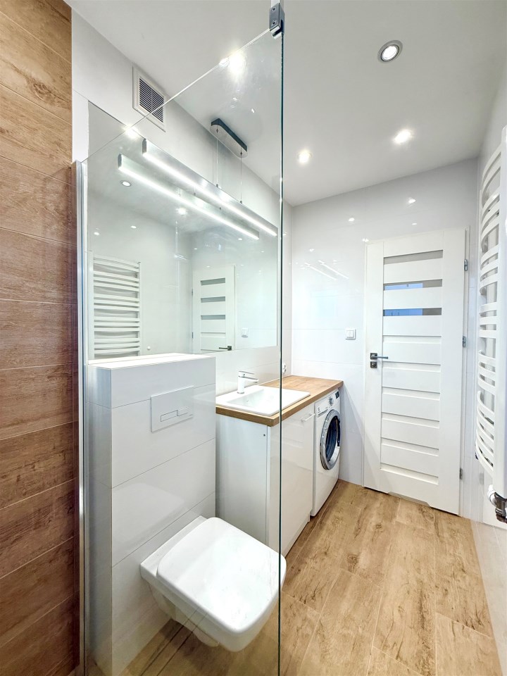 W cenie pozostaje pełne wyposażenie firmowe AGD : piekarnik, kuchenka, zmywarka, pralka- wszystko w doskonałym stanie technicznym