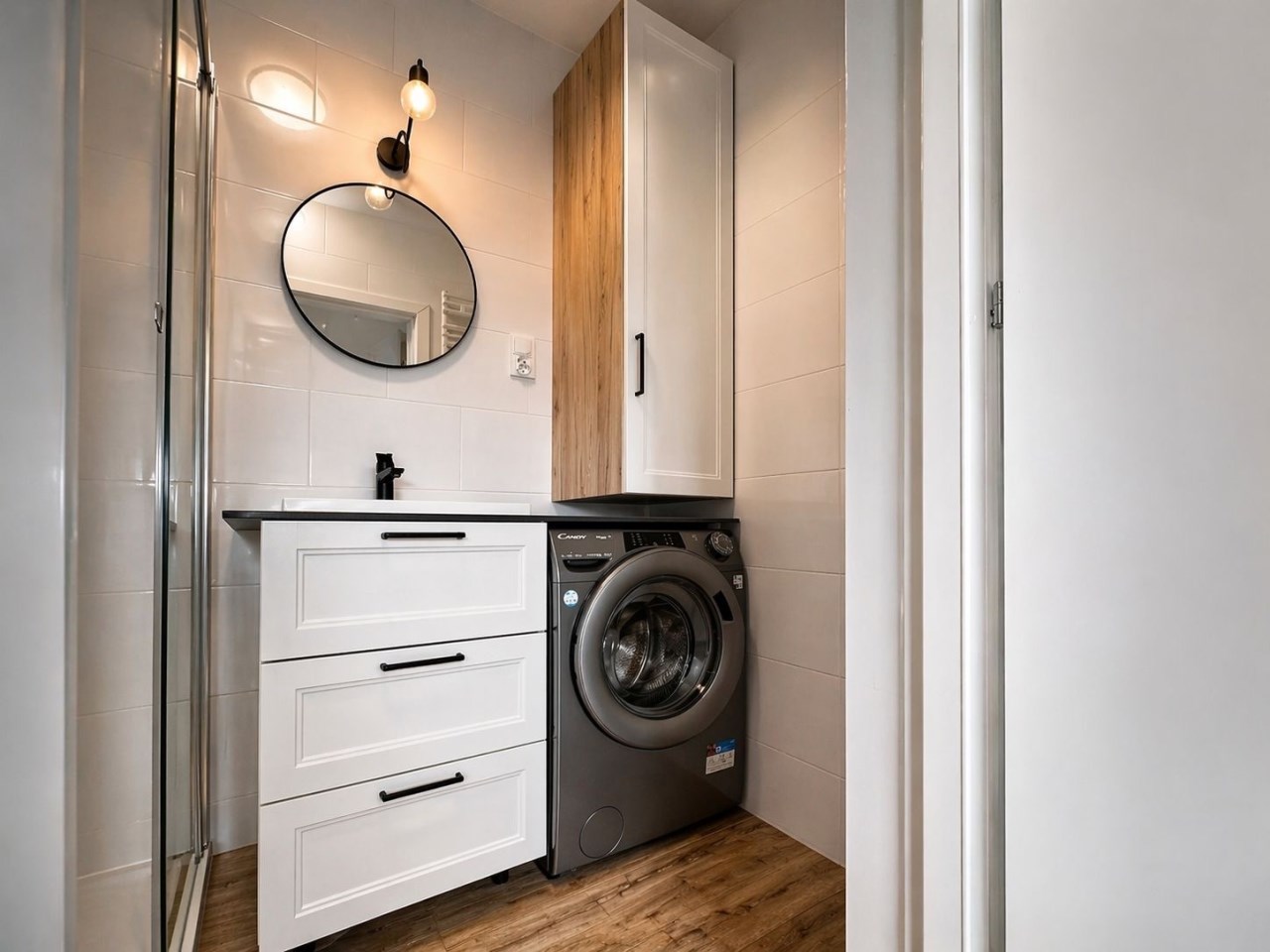 | Wyposażenie łazienki | kabina prysznicowa, lustro, natrysk, pralka, prysznic, umywalka, WC |