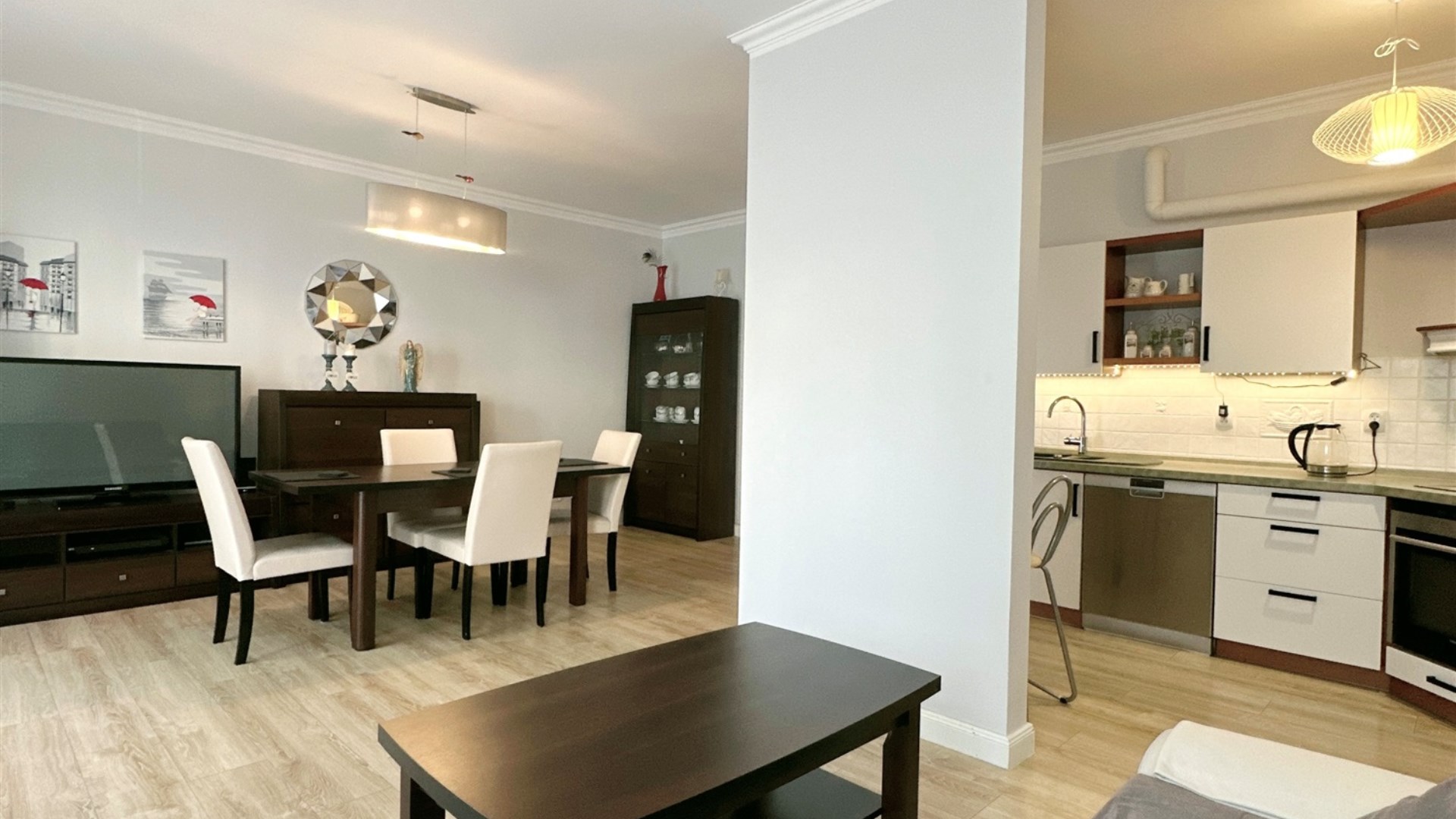 - przestronny salon z jadalnią, aneksem kuchennym oraz wyjściem na balkon,