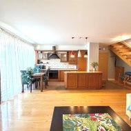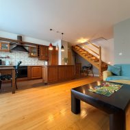 dwupoziomowy układ parter: część dzienna z salonem i aneksem kuchennym,