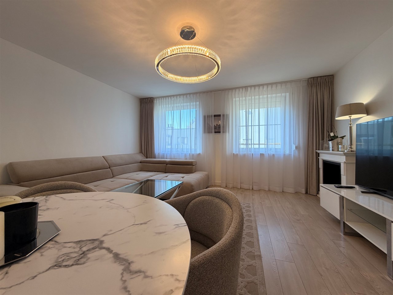 Apartament jest w pełni wyposażony i gotowy do wprowadzenia się.